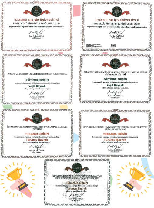 IGU implements practices that prioritize spatial and educational accessibility to ensure the full and equal participation of students, academic and administrative staff, and visitors with disabilities in campus life. The university carries out arrangements across all faculties and campuses to facilitate the independent mobility of individuals with disabilities, adhering to accessibility standards in buildings, classrooms, libraries, social areas, and emergency systems. In addition, these efforts have been nationally recognized through awards and nominations received under the Barrier-Free University Flag Awards organized by the Council of Higher Education (YÖK).
