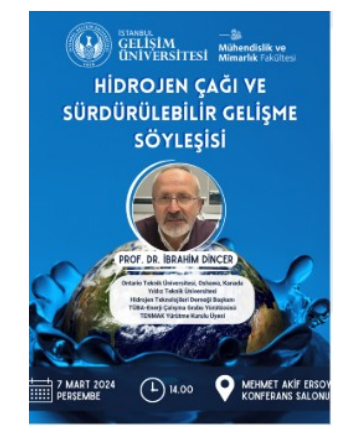 The talk, titled "The Hydrogen Age and Sustainable Development," organized by the Faculty of Engineering and Architecture at IGU, took place on March 7, 2024, at the Mehmet Akif Ersoy Conference Hall. Speakers included a faculty member from the Ontario University of Technology, a member of the TÜBA Energy Working Group, a member of the TENMAK Executive Board, and the President of the Hydrogen Technologies Association. The event addressed the role of hydrogen technologies in sustainable development, their role in the energy transition, and their potential contributions to climate action. Strengthening academic and public collaboration, the event emphasized the importance of transitioning to clean energy solutions in line with SDG 13 targets.