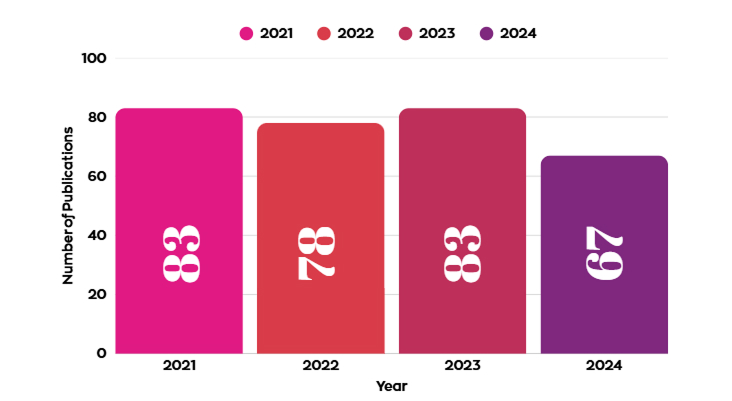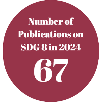 Although the 2024 data shows a numerical decline compared to previous years, with 67 publications, IGU's research focus on SDG 8 continues steadily. These data reveal that the university continues to produce sustainable and effective academic contributions in areas such as economic growth, employment, labor force transformation, and decent working conditions.