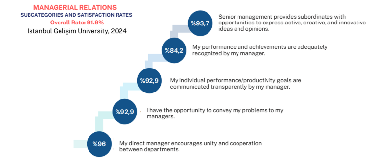 The 2024 Employee Satisfaction Survey results also indicate that the University’s grievance and feedback processes are perceived by employees as accessible and effective. A total of 85,4% of academic staff stated that “the channels through which they can convey issues and suggestions operate effectively.” Additionally, 85,7% of academic staff reported that they believe their managers “make an effort to resolve problems,” while 87,3% stated that their managers are “fair.” These figures demonstrate that managerial communication is conducted on a fair and solution-oriented basis.