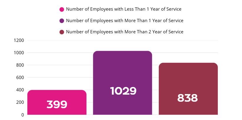 As of 2024, 72% (1.029) of the total 1.428 employees at IGU have been serving for more than one year. This figure demonstrates the University’s commitment to continuity in its employment policies and to securing employment contracts. Furthermore, the number of staff who have been employed for more than 24 months increased from 785 in 2023 to 838 in 2024, indicating that long-term employment is being strengthened at the institutional level. All employees are employed under written contracts by the Labor Law of the Republic of Türkiye No. 4857, which ensures a sustainable and stable working environment under legal protection.
